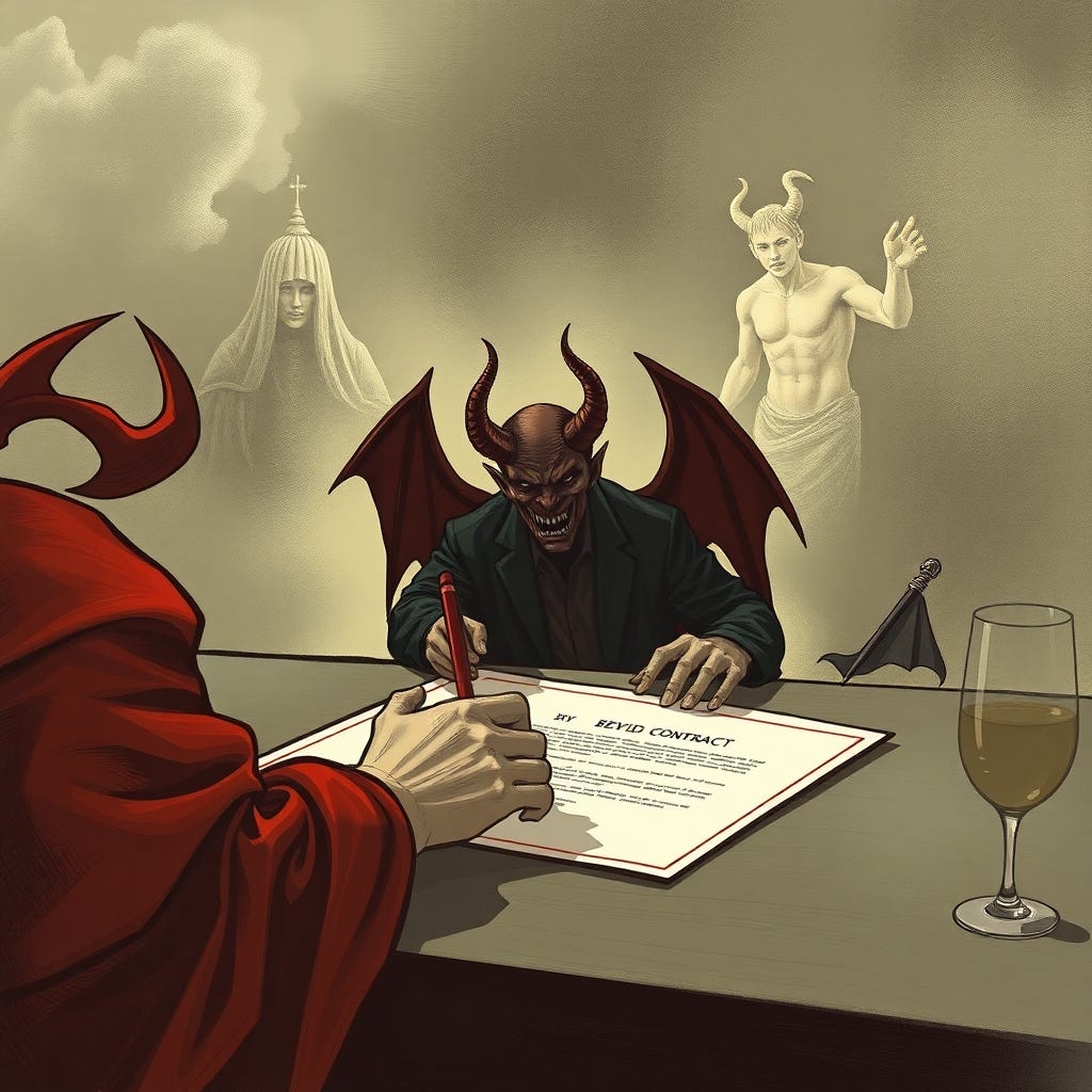 Eventually, the devil introduces himself to Faust and promises him everything that he ever wanted if he simply signs a contract. Faust sold his soul to the devil to experience life to its fullest.