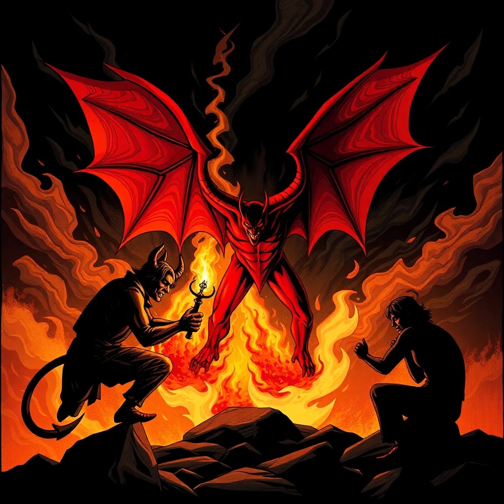 Like clockwork, the devil (Mephistopheles) shows up to pay the emperor a visit. Mephistopheles easily convinces the emperor to fix the economy by inflating the money supply and paying off the debt by stealing gold that the citizens buried underground.